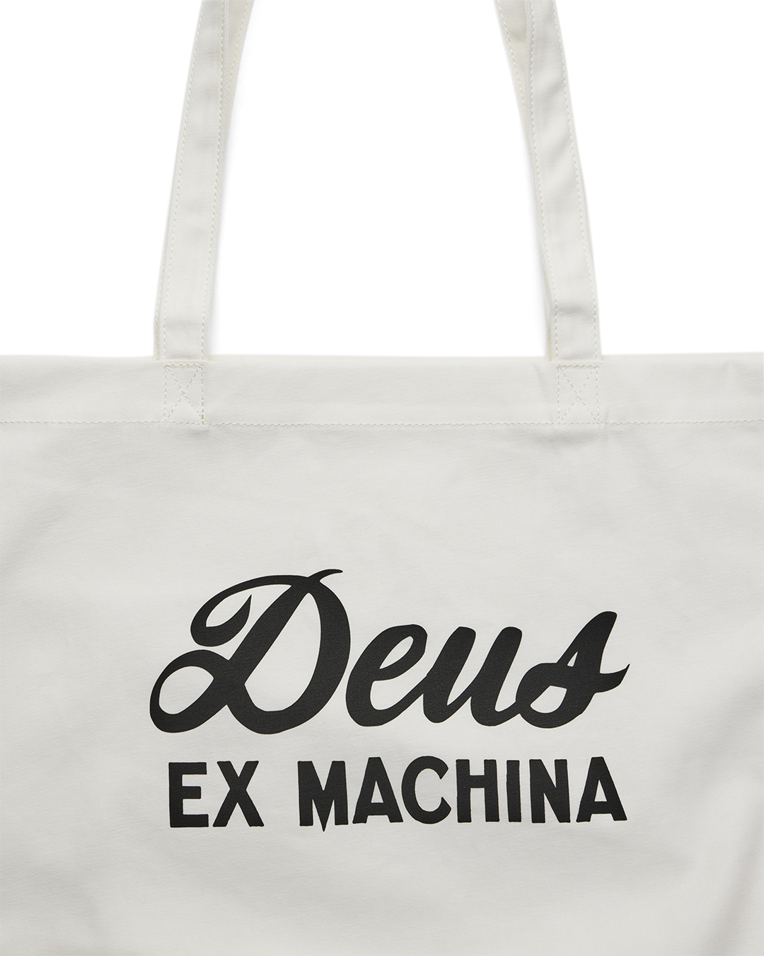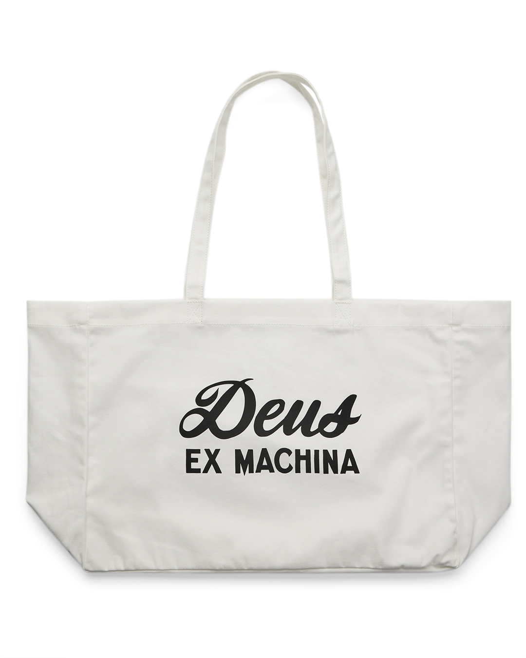 Die Shop Tote Bag trägt das klassische Deus Logo – schlicht, klar und überall sofort erkennbar. Aus robustem Baumwoll-Twill gefertigt, ist sie der ideale Begleiter für Alltag, Reisen oder spontane Roadtrips.