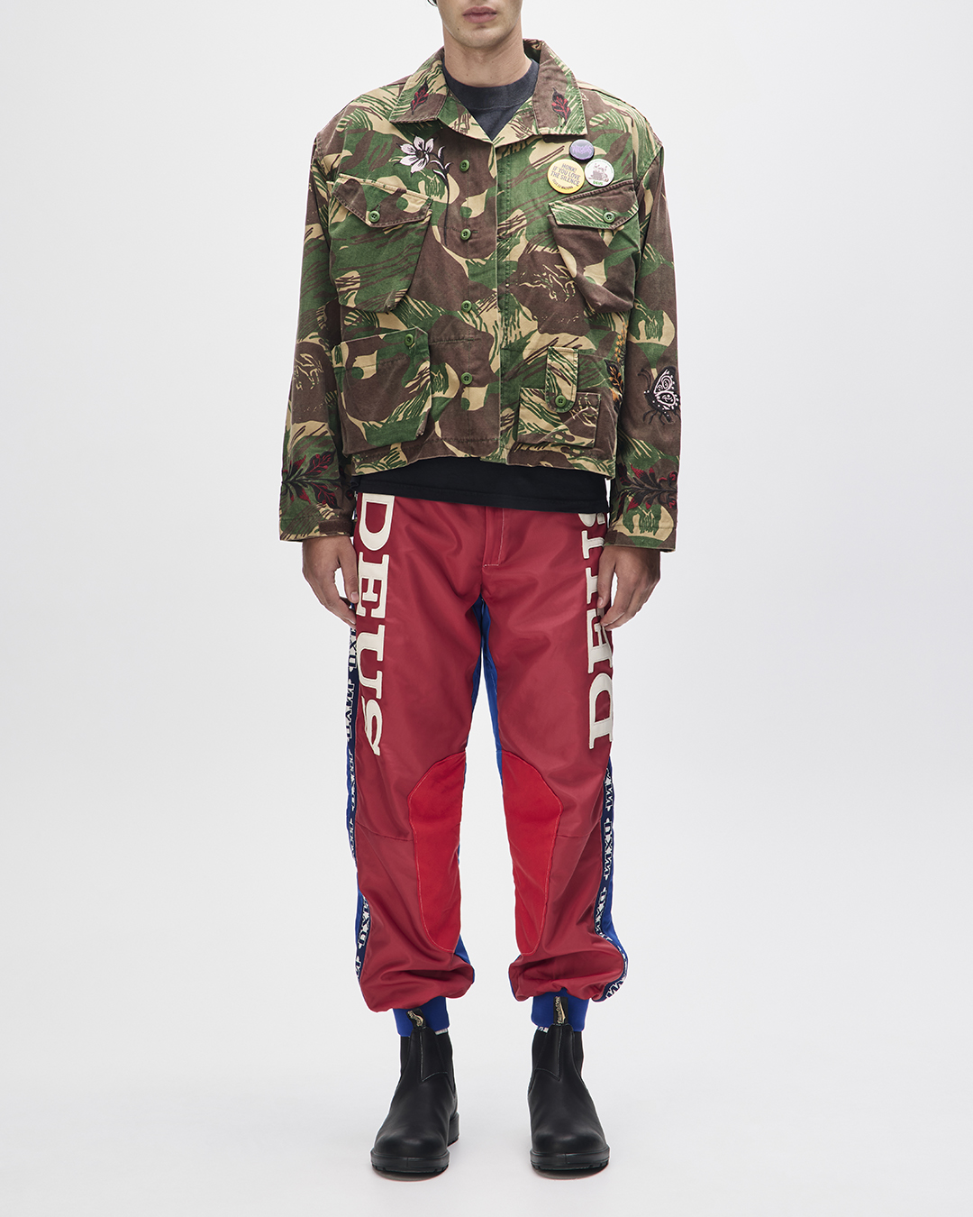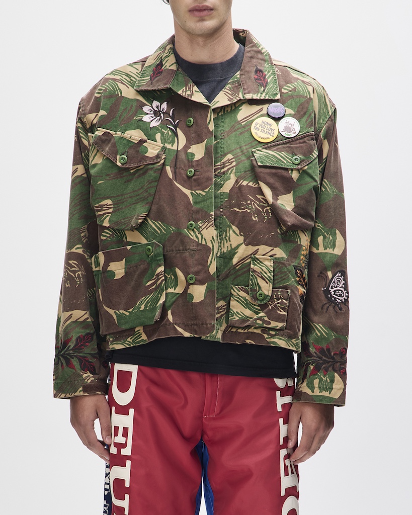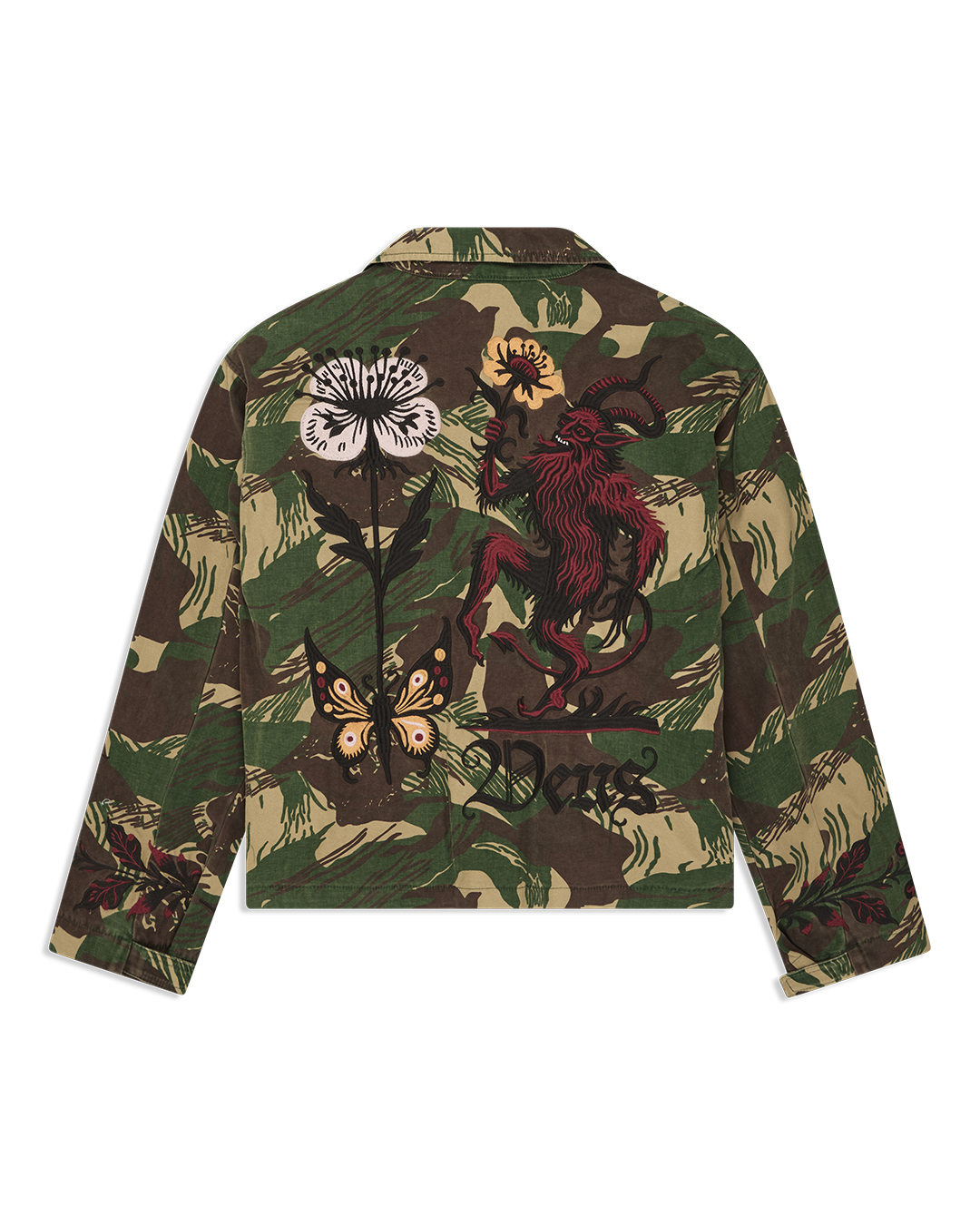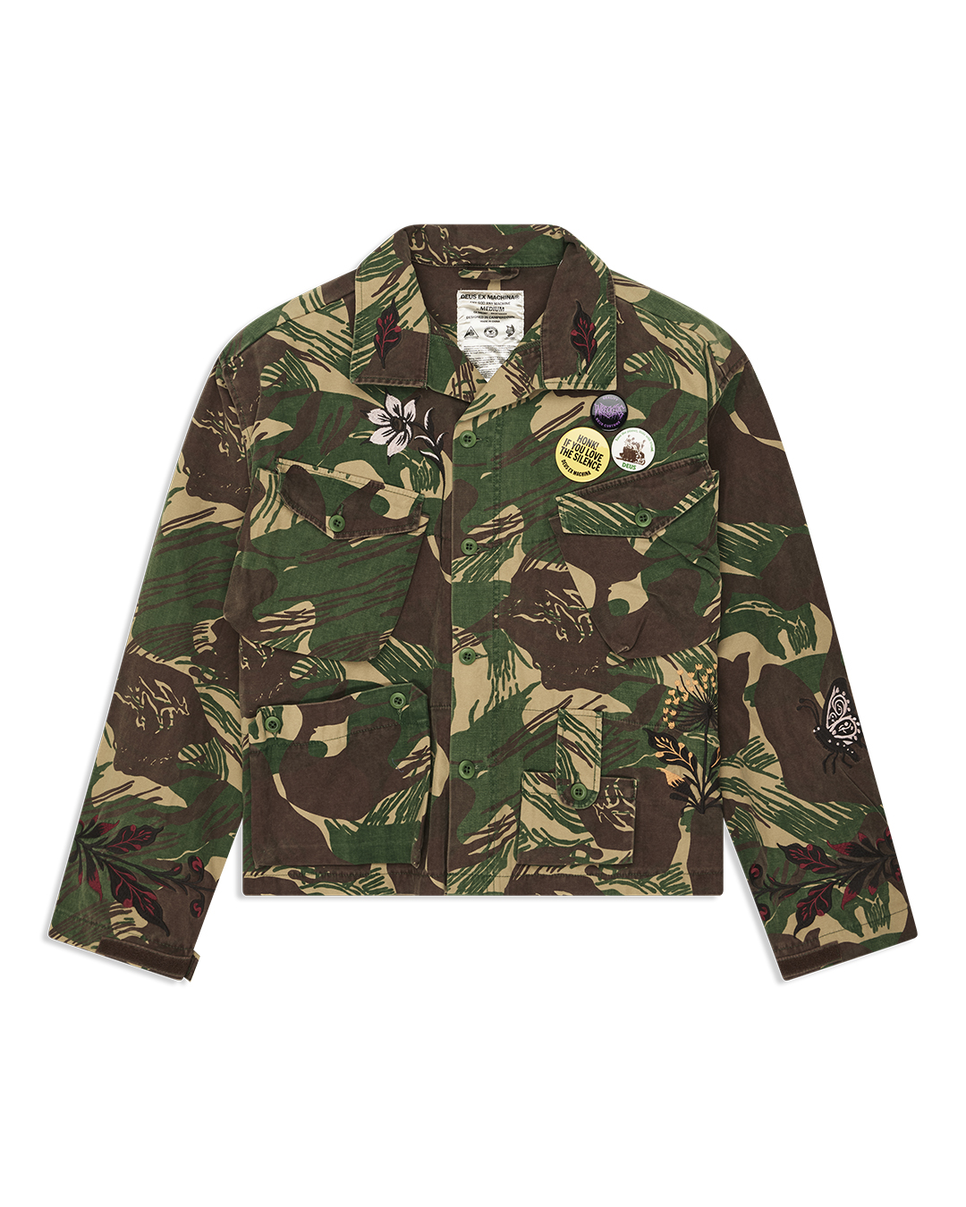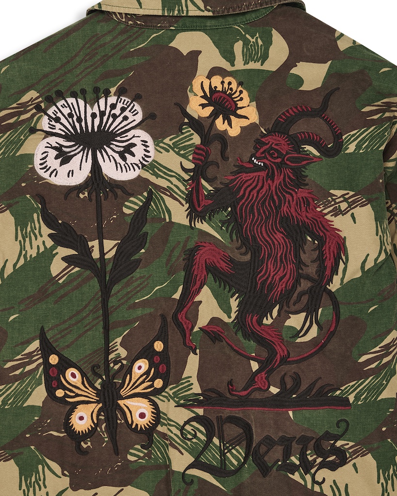 Die Ahimsa Jacket / Overshirt verbindet Military-Einflüsse mit dem unverkennbaren Deus Records Spirit. Mit oversized Fit, aufwendiger Stickerei und authentischer Waschung entsteht ein markantes Piece, das Retro-Charakter und Individualität ausstrahlt.